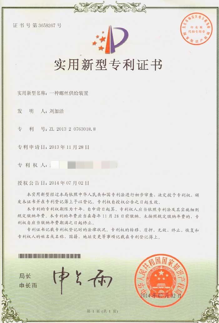 螺絲機專業(yè)生產(chǎn)廠家已通過ISO9001質量管理體系認證